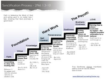 We cannot do this ‘sanctification process’ in our own power. It’s as we die daily to self that Christ can carry out the transformation process in us. (Rom 12:1-2) As we study God’s word and learn more about Him, then we climb the ladder of sanctification to more fully reflect His character.